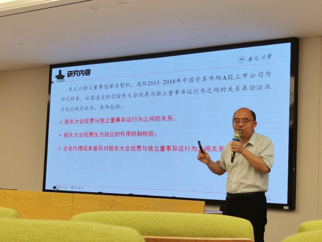 周泽将教授以“股东大会投票与独立董事异议行为研究”为引,兼论论文选题、写作及投稿等方面的技巧。首先,周泽将教授详细介绍了论文的研究背景、研究内容、研究意义以及实证结果,清晰完整地展示了论文的框架结构;随后,周泽将教授以这篇论文为例,阐述了怎么写这类论文;其次,周泽将教授从国家重大现实发展问题、文献遗漏问题、学术公众号、学术报告、中国情境下的持有问题等五个角度说明了论文选题的重要性,并结合实例介绍了选题的技巧。