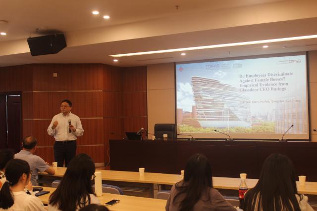 本次讲座主要围绕吴强教授待发表的论文“员工歧视女老板吗?来自Glassdoor的证据”进行介绍。他首先介绍了研究的动机。一方面,在劳动力市场中,性别歧视问题一直是人们常常议论的话题。但是,人们通常是以“自上而下”的角度讨论女性员工在职场中的歧视,却很少有人“自下而上”的考虑是否存在员工对女性老板的歧视问题。另一方面,心理学的研究通过一系列实验和调研对该问题进行分析,但是缺少这一问题的实证分析。对此,吴强教授提出以下三个假说:一是员工对女性CEO的评价低于男性CEO;二是员工对女性CEO的评价高于男性CEO;三是员工对女性CEO的评价等于男性CEO。