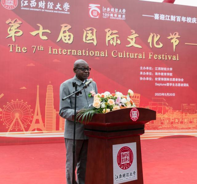 5月20日下午,由江西财经大学主办、海外教育学院承办的第七届国际文化节在崛起广场成功举行。津巴布韦共和国驻华大使马丁·切东多博士、佩雷斯·卡沃恰参赞和郎格莱·莫扎朴参赞应邀出席。校长邓辉致开幕词,副校长刘小丽宣布开幕,各相关二级单位负责人及来自全球65个国家的近2000名中外师生齐聚崛起广场,共襄盛事。
