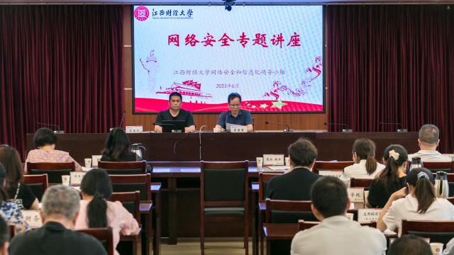 6月14日下午,江西省公安厅网络安全保卫总队副总队长高建斌应邀来校作题为“校园网络安全防护”的专题讲座。本次讲座由智慧校园管理中心党总支书记肖清雷主持。校属各单位分管网络安全负责人及各单位信息安全员到会参与讲座。