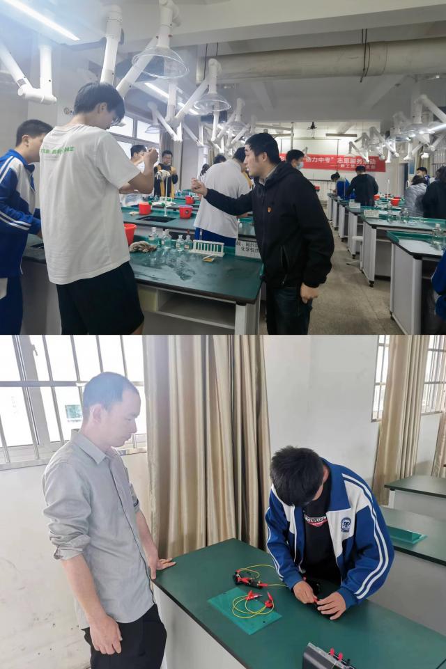 针对理化实验操作考试中的重、难点,党员志愿者利用晚自习根据学生不同的情况有针对性的进行指导。