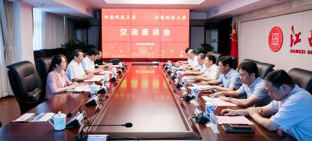 6月29日下午,河南科技大学校长孔留安一行5人到我校考察交流,校党委书记卢福财,党委常委、副校长袁红林出席座谈会。
