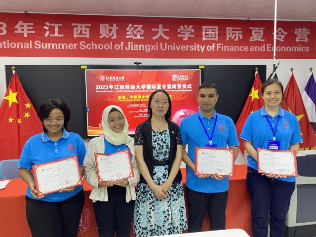 刘小丽向顺利完成此次夏令营学习任务的全体学员表示了热烈祝贺,同时向所有付出辛劳的教学人员和工作人员表示了感谢。刘小丽表示,通过此次夏令营,各位学员收获了知识、学习了文化、增进了友谊,还积极参加互动研讨、坦诚交流,相互探讨中国经济发展模式、成功经验,不仅加深了大家对中国数字经济和传统文化的理解,还开阔了眼界,收获了成长和快乐。她希望各位学员将来能不忘初心,成为增进双边友谊、扩大中外合作交流的桥梁和友好使者,也希望大家能把在江西财经大学学习生活的真实感受讲给更多的人听,把“留学江财”这张名片传遍世界。