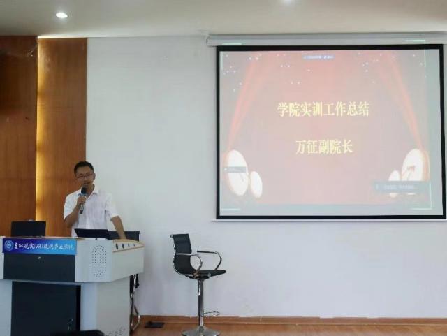 万征副院长首先就实训工作做总结发言,他指出,在学校党委、行政的正确领导下,以及地方政府和合作企业的关心支持和帮助下,VR学院的综合办学实力正在稳步提升,社会影响力持续扩大,办学声誉日益增强,并介绍了本次科创训练营选题征集、选题遴选、学生报名和实训四个阶段的开展情况,对全体师生在科创训练营中的付出给予高度赞扬,鼓励他们在未来的学习和工作中继续保持创新精神和团队合作意识。