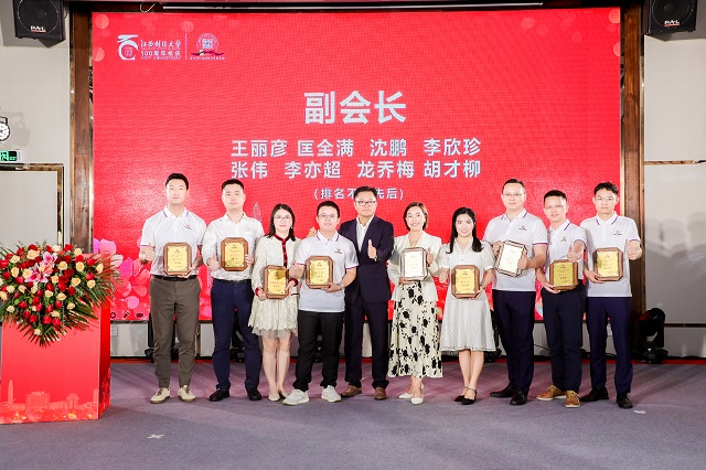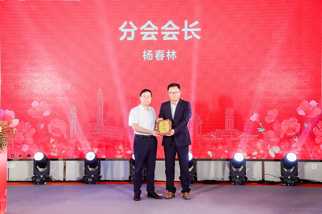 吴朝阳为国贸分会名誉会长、分会会长授牌,廖勇勇为国贸分会执行会长授牌,新当选的杨春林会长为国贸分会副会长、副秘书长授牌。