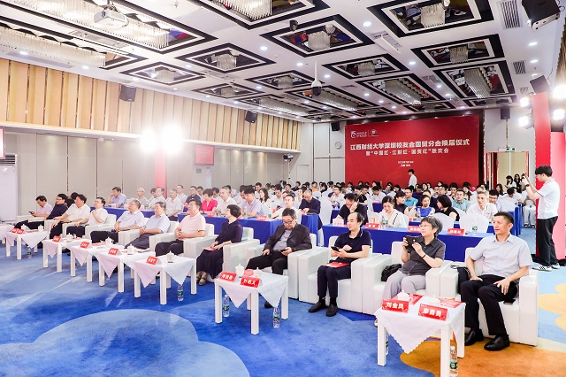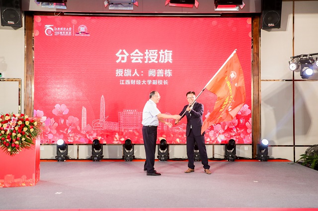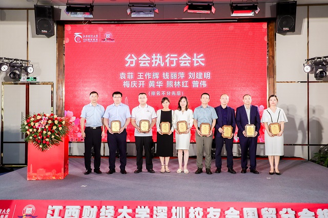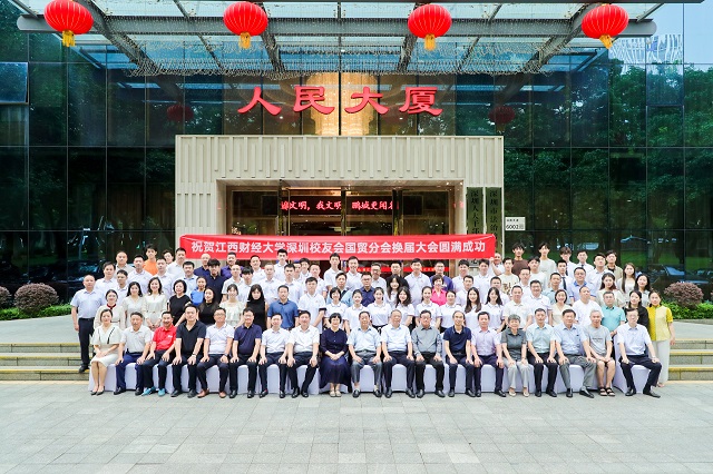 7月15日,江西财经大学深圳校友会国贸分会换届大会暨“中国红·江财红·国贸红”联欢会举行。副校长阙善栋,国贸学院院长吴朝阳、党委书记廖勇勇,深圳研究院院长吴良平,深圳校友会会长李发勇、执行会长杨高宇、吴吉林,执行会长兼秘书长詹伟哉,校友会艺术团团长刘贡力应邀出席了大会。学院历任领导及学校师生、深圳校友会、社会各界校友、嘉宾代表共计200余人见证了仪式的举办。学校原党委书记,国贸学院老领导伍世安教授应邀出席了大会。