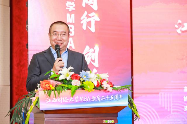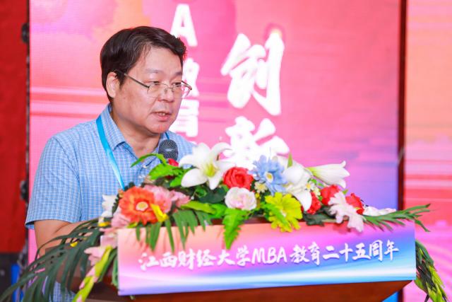 卢福财在致辞中指出,今年是学校建校百年,江财MBA教育的25年是与江财百年财经教育同向同行、同频共振的25年。25年前,江财MBA教育因时而立,于上世纪末中国经济起飞之际,应运而生,开启了全省乃至全国MBA教育领先之路。它同时因地而强,于江西红土地汲取办学养分,构筑品牌,形成了“江西是标杆,中部有地位,全国有影响”的良好品牌效应。江财MBA教育还因人而兴,于江财人的开拓精神中稳步前行,发展壮大,不仅培养了一大批为政为民、经商济民、勇担社会责任的杰出校友,自身发展也是硕果累累。它还因情而美,于“国之大者”的战略情怀中守正创新,和美与共,将中西管理智慧融会贯通,以中华管理思想融入培养过程,形成“七有”格局,为中国管理教育事业做出了重要贡献。卢福财同时希望,学校MBA教育未来持续保持与党和国家教育事业同心同德、同心同力,与其他MBA举办院校携手合作、并肩前进,共同推动中国MBA教育事业发展,为加快教育强国建设贡献力量。