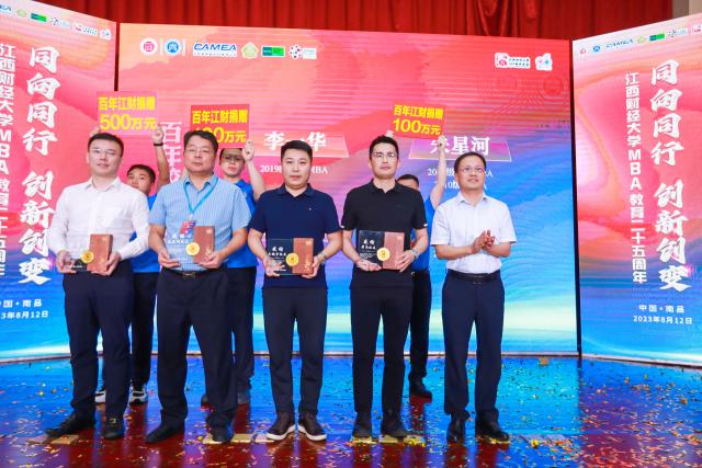 为表达对百年校庆的诚挚祝贺,MBA校友为百年江财基金捐赠累计达1000万元,并第一批加入“百年江财·校友印记”项目。校党委副书记龚剑飞、副校长刘小丽分别向校友们心系母校发展、慷慨捐赠的善举致谢,并颁发感谢状。