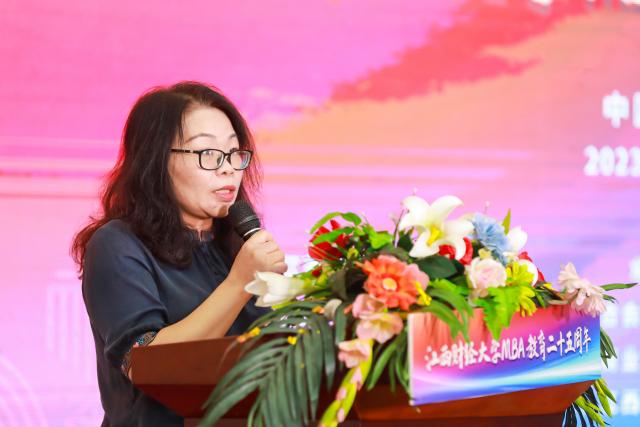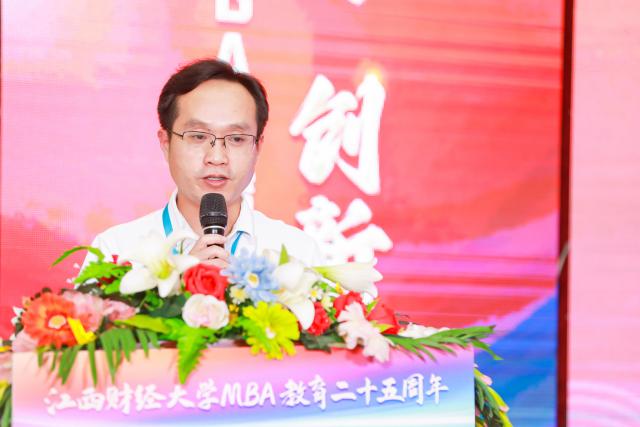 江西省教育厅研究生教育与科学技术处处长(省学位办主任)朱程红在致辞时指出,江财MBA教育25周年的风雨历程,是江西财经大学百年历史的重要组成部分。工商管理学院通过将中华管理思想融入人才培养过程,培养了大批具有创新创业意识和国际化视野的高级经济管理类人才。党的二十大首次将教育、科技、人才“三位一体”、共同部署,省委、省政府同样高度重视高等教育。面对新的机遇和挑战,希望学校继续发扬优良传统,以党的二十大精神为指引,始终坚持正确的办学方向,牢牢把握新时代、新使命、新要求,坚持走国际化与本土化有机融合道路,继续回答好“培养什么样的人、如何培养人以及为谁培养人”的时代之问,为中国教育事业的发展做出新的更大贡献。