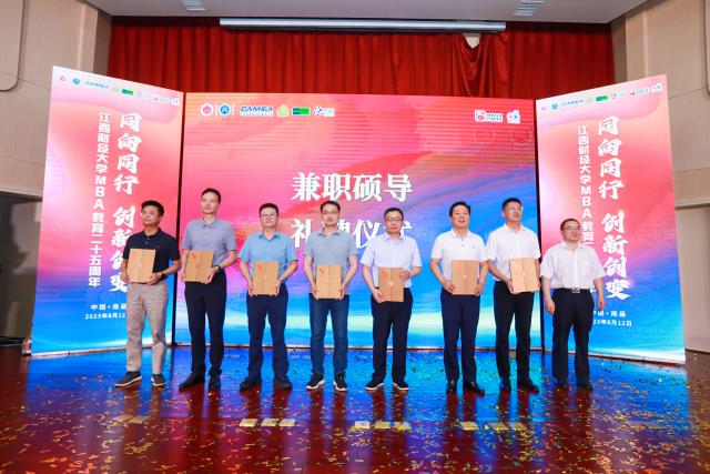 大会现场还举行了兼职硕导礼聘仪式。校纪委书记顾有平、副校长李春根分别为新聘和续聘MBA兼职硕导代表颁发聘书。