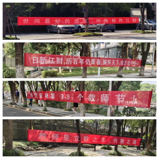 “世间最好的遇见,叫做相约江财”“日新江财,历百年仍青春;胸怀天下,经万世守初心”“教师是立教之本、兴教之源”……迎新与教师节、校庆的碰撞让2023年秋季学期开学不同寻常,校园里充满了喜庆氛围。