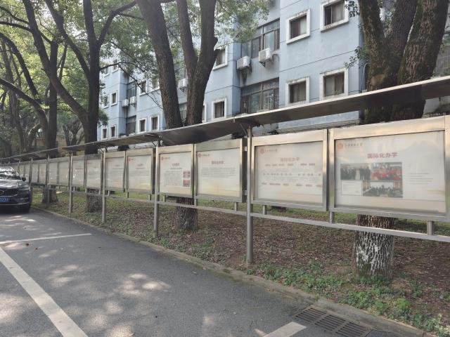 一条条横幅既展示出百年江财青春飞扬、广纳四方学子的热情,也展现了我校尊师重教的优良传统。一组以“百年江财办学成就”为主题的宣传喷绘分别在蛟桥园校区地下通道宣传灯箱、户外宣传橱窗、麦庐园宣传橱窗等处布置,吸引新生及家长驻足。
