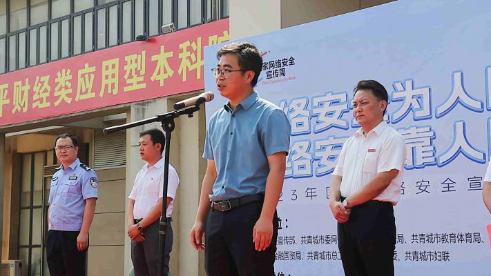 刘孝波对现代经济管理学院大力支持本次活动表达了衷心感谢,他指出,网络安全作为网络强国、数字中国的底座,将在未来的发展中承担托底的重担。没有网络安全就没有国家安全,就没有经济社会运行稳定,广大人民群众利益也难以得到保障。高校大学生是推动网络文化传播的关键群体、是改善网络生态空间的重要支撑,也是加快网络技术创新的有生力量。本届共青城市“国家网络安全宣传周”活动启动仪式在现代经济管理学院举行,我们期待江财学子秉承“信、敏、廉、毅”的校训精神,带头当好新时代网络法治的“守护者”、网络文明的“传播者”、网络安全的“践行者”,以江财学子和广大驻市高校大学生之力、之行、之为,携手共筑网络安全坚实防线,为谱写中国式现代化共青篇章提供强大网上舆论支持、可靠网络安全保障和有力信息化支撑。
