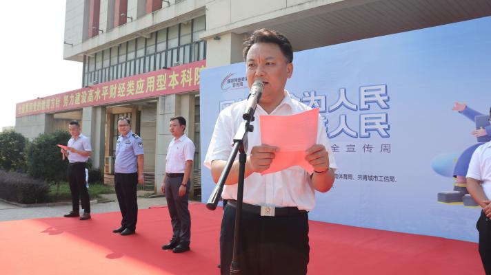 共青城市委常委、宣传部部长、统战部部长许巨峰,现代经济管理学院院长王金海,现代经济管理学党委委员、宣传统战部部长张富成,共青城市委网信办主任刘孝波,共青城市公安局党委委员、副局长屈乐出席,学院师生代表共400余人参加了启动仪式。