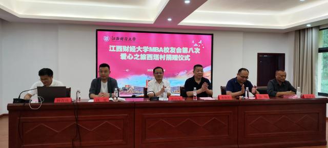 MBA校友代表秦秋阳在捐赠仪式上致辞表示,两年来,西塔村在上级党政和学校帮扶下,道路平整了,路灯亮了,街道整洁了,村容村貌焕然一新,有初心广场、革命烈士纪念碑、蓝家祠修铜宜奉边暴动委员会旧址,已成为省级“红色名村”,是红色旅游打卡点。这让他感到由衷的高兴,更坚定了MBA校友会帮扶西塔村的信心。他表示将继续汇集MBA校友的爱心,服务社会公益事业,帮助最需要帮助的人,把西塔建设得更加美好。