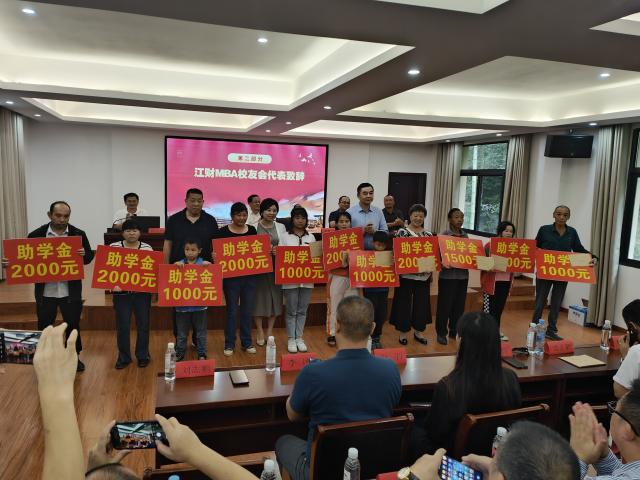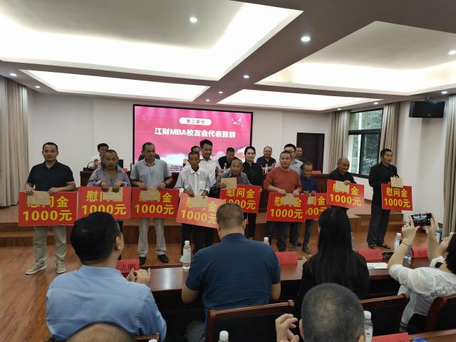 会上,MBA校友会副会长兼秘书长刘志鹏为西塔村捐赠乡村振兴发展基金。与会MBA校友代表分别为定向帮扶西塔村孤寡老人捐赠和困难学生捐赠慰问金和助学金。百丈山管委会副书记姚斐和西塔村村支部书记蓝球太为表达对学校MBA校友们的感激之情,向校友们颁发了荣誉证书和赠送了锦旗。