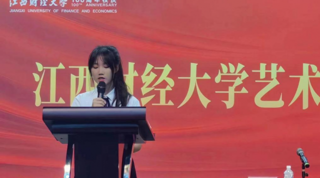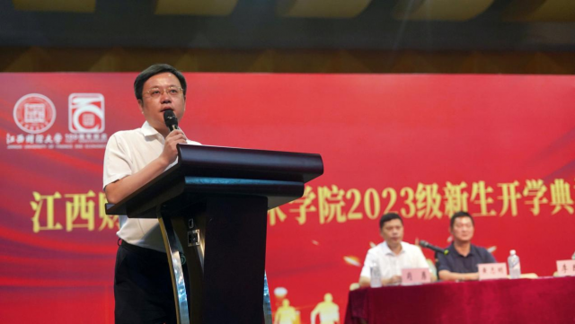 2023级本科生新生代表李梓萌作为新生代表发言,感谢学校的学长学姐们,使得他们一进入校园就感受到了温暖,一刹那就成为了“艺家人”,同时表达了对大学崭新生活的期待。她表示在大学四年里,做到心有格局、砥砺前行,学会认知、学会做事、学会做人,用飞扬的青春、跳动的热情来续写艺院的未来。