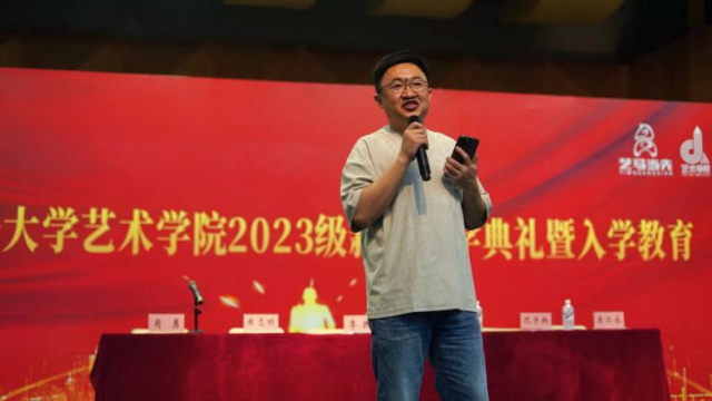 艺术学院优秀校友代表杨栋来为新生寄语,讲述了自己在校的经历和毕业后走向成功的经验。他希望同学们在大学要合理安排时间,学好专业知识的同时,还要提高情商和各种能力,对新生们的殷切期望和敦敦教诲激励了每一位艺术学院的青年学子。