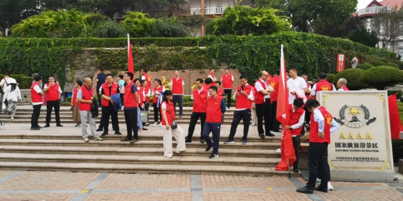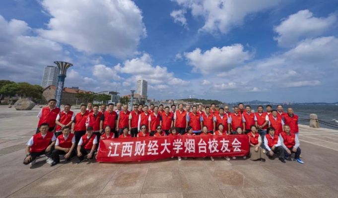 旗传递启动仪式在烟台市的地标区域烟台山广场举行,江西财经大学校旗和江财烟台校友会会旗两面大旗迎风招展。所有参加活动的校友身穿胸前印有“江西财经大学”、后背印有“江财烟台校友会”和“信敏廉毅”校训字样的红色马甲,在现场指挥长1999级校友范鹏飞的主持下,会长、秘书长陪同外地校友会来宾站在“烟台山”字样背景前的广场中间,全体校友分站两边,打出“百年江财全球接力校旗传递烟台站”和“江西财经大学烟台校友会”两个横幅,火红的场面庄重而热烈,引得现场大量游客和群众围观叫好。