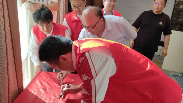 江财校旗经过在烟23个级别校友间的传递接力,使在场的每一位校友心情激荡,热血澎湃,仿佛又回到了那个朝气蓬勃的校园生活年代。