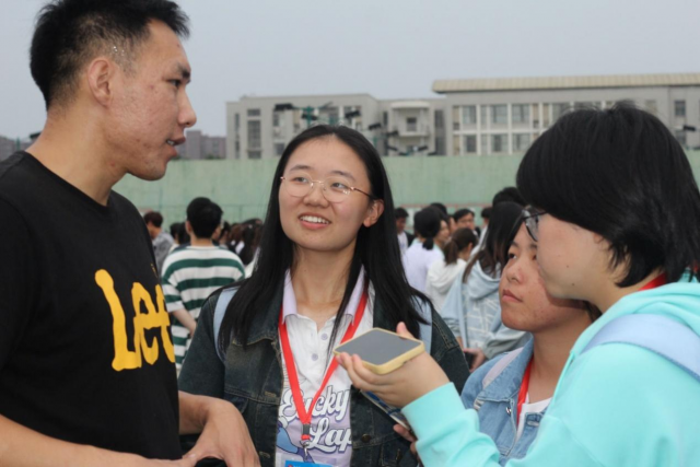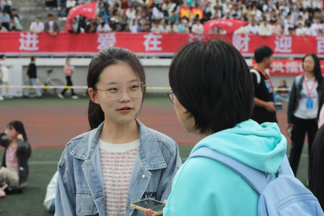 阳光铺洒赛场,金桂十里飘香,灿烂的时节中,江财学子们力争上游,尽情闪耀青春的火光。“既要仰望星空也要脚踏实地”这是温家宝总理对青年人的寄语,当谈到“摘星”的秘诀时,财税学院的潘雨欣同学说:“一是我觉得要踏实做好每件事情,做事时要一步一个脚印,二是要敢想敢做,要有一些目标,要明白自己想要干些什么,再付诸行动。”立下目标,敢想敢做,勤恳实干,“励志”,“怀勇”,“前进”,三者合一,方可在拼搏路上事半功倍。一声声力竭声嘶的加油,一句句激动人心的喝彩,自耳中流入心中,这是所有拼搏者心中的引擎,支持他们竭尽全力奔赴终点。国际学院的马淑蓉同学说:“作为观赛者,运动健儿们的身影将深深烙印在我心中,在今后的人生鼓舞我奋勇前进。”清风徐来,红旗飘飘,国旗与校旗下,是青春正好,风华正茂的江财学子们,羡子年少正得路,有如扶桑初日升。去闪耀吧!在金子般宝贵的青春时节。