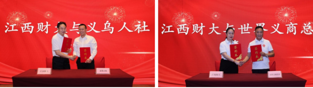 会上,学校分别与义乌人力资源和社会保障局、世界义商总会签订了合作协议。