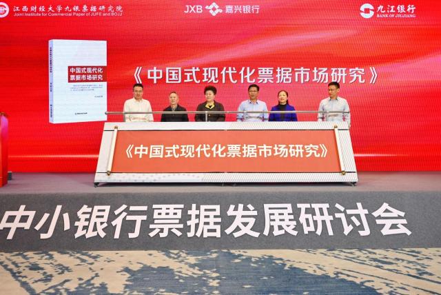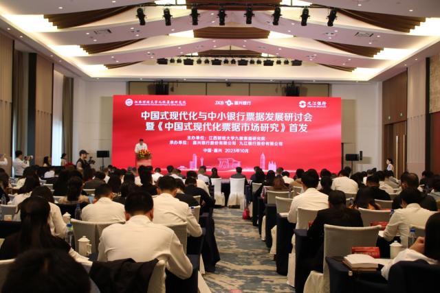 10月20日,由江西财经大学九银票据研究院主办,嘉兴银行公司、九江银行承办的“中国式现代化与中小银行票据发展研讨会暨《中国式现代化票据市场研究》首发式”在浙江嘉兴举办。出席此次会议的嘉宾有江西财经大学副校长袁红林,上海票据交易所监事长周荣芳,九江银行行长肖璟,嘉兴银行党委副书记、行长章张海,江西财经大学金融学院院长、九银票据研究院院长桂荷发,工商银行原研究总监、江西财经大学九银票据研究院顾问詹向阳,江西财经大学九银票据研究院执行院长肖小和,上海票据交易所交易部总经理汤莹玮,嘉兴银行党委副书记王芳、党委委员刘红静、行长助理江逸民。出席此次会议的嘉宾还有晋商银行副行长李燕斌,上海振兴江西促进会金融分会李锦霖,上海果藤数字科技董事长、荣程五洲数字科技总经理李春雷,江西财经大学金融学院副院长、九银票据研究院副院长彭玉镏、秘书长秦书卷、高级研究员赵慈拉,嘉兴银行总行及各支行领导同事,来自商业银行、证券公司、期货公司、科技公司等票据从业人员,以及企业代表共160余人。会议由江西财经大学金融学院院长、九银票据研究院院长桂荷发教授主持。
