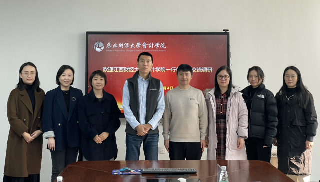 12月4日上午,会计学院副院长熊凌云、理财系副主任肖丽娟、青年教师杨晨、辅导员蒋博斌一行赴东北财经大学会计学院调研,同东北财经大学会计学院副院长张晓东、会计系主任崔发婧、培养工作办公室主任刘蕊、学位秘书高晓易、研究生专职辅导员刘傲然进行座谈交流。