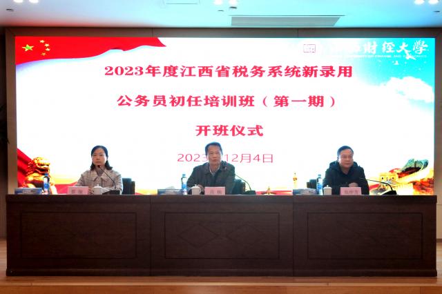 12月4日上午,2023年度江西省税务系统新录用公务员初任培训班(第一期)开班仪式在南昌举行,本次培训班由财税与公共管理学院承办。出席开班仪式的领导有国家税务总局江西省税务局教育处处长肖楠、财税与公共管理学院院长张仲芳。开班仪式由国家税务总局江西省税务局教育处副处长蔡敏主持,150名江西税务系统新录用公务员参加开班仪式。