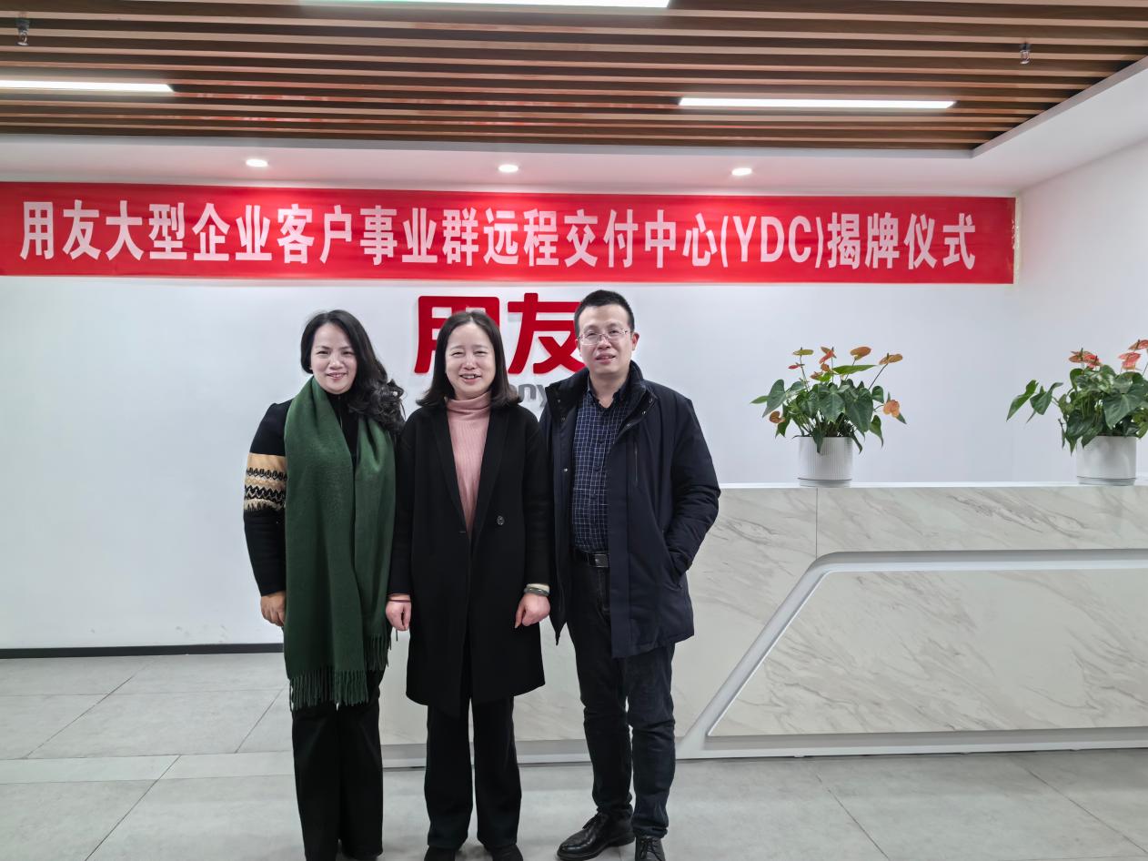 会后,匡琳一行先后参观了用友大型企业客户事业群全球远程交付中心YDC、电子政务服务中心、客户中心,并与用友新道华东区总经理丁立波,新道科技股份有限公司江西区总经理王文江开展了交流洽谈,了解企业发展趋势和人才需求情况,围绕人才培养、科学研究和校企实践教学基地合作等深入探讨“产教学研”融合新路径,并达成了进一步的合作意向。