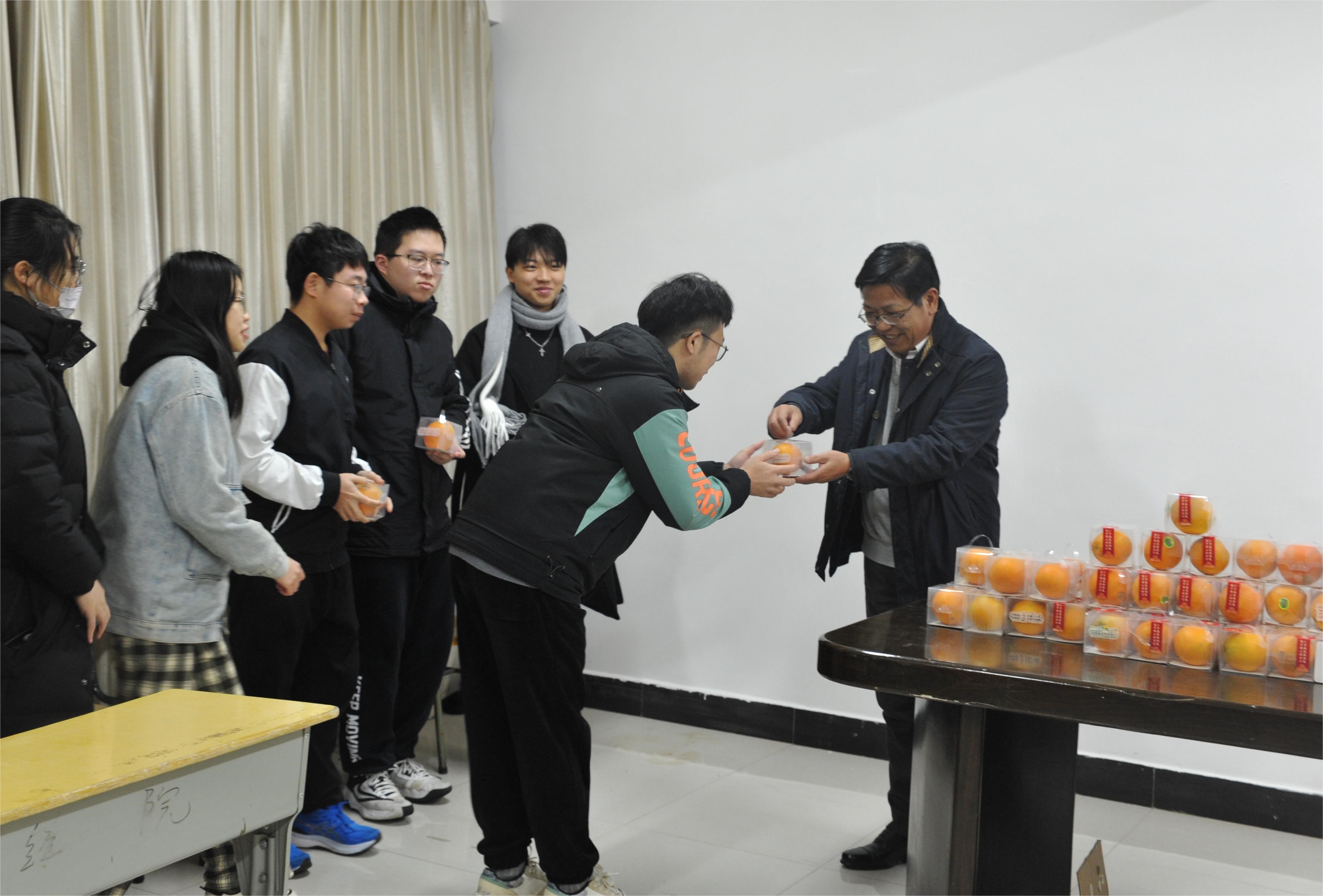 交流过后,袁红林为考研学子发放脐橙,祝愿考研学子们都能“脐”(旗)开得胜、心想事“橙”(成)、马到“橙”(成)功。表达了对考研学子的美好祝愿。在发放礼品的过程,袁红林对考研学子表达了深切的关怀,鼓励同学们巩固知识,放松心态,以平常心对待考试,发挥出自己的真实水平。贴心的叮嘱,暖心的祝福,让考研学子们深深感受到了来自江财大家庭的爱与温暖。
