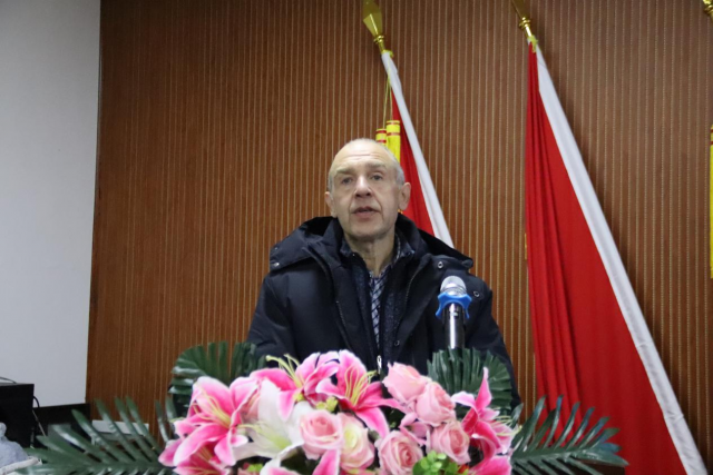 布拉科夫·维克多·尼古拉耶维奇对现代经济管理学院成立22周年致以诚挚的问候与祝贺,并表示国际化人才培养已经成为高等教育的重要任务,我们一直致力于中外合作交流,而这需要学校培养更多具有国际视野,跨文化交流能力的高素质人才,由此现代经济管理学院成立中外语言交流合作中心十分重要。