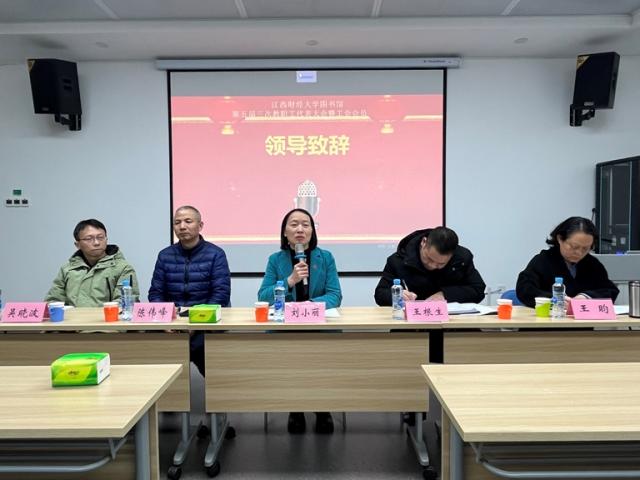 1月8日下午,图书馆第五届三次教职工代表大会暨工会会员代表大会在图文信息大楼五楼培训教室顺利召开。副校长刘小丽出席大会并作讲话。馆长王根生作《图书馆2023年工作报告》,副馆长陈伟峰、王昀、吴晓波及全馆职工出席了会议。会议主要分工作报告、述职述德述廉、民主评议等阶段进行,大会由吴晓波主持。