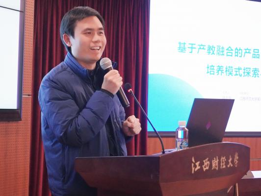 华人工业设计十大青年精英教师、江西师范大学设计创新研究院副院长韩吉安教授分析了地方院校产品设计专业人才培养的普遍困境,探索产教融合下产品设计创新人才培养模式,分享了江西财经大学和江西师范大学基于产教融合的产品设计创新人才培养实践的教育教学成果。