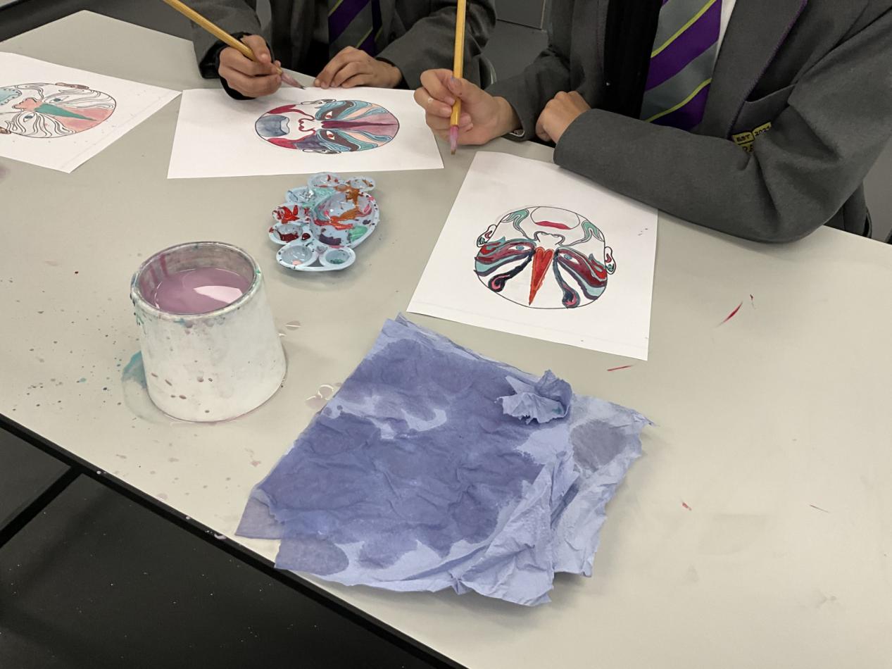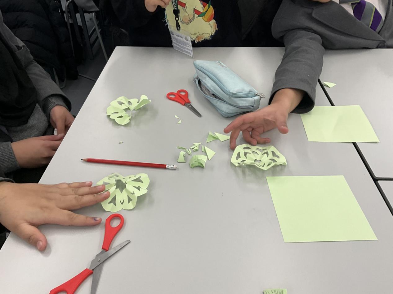 活动中,90名七年级学生分成三组,轮流进行中国武术、脸谱绘制和新春剪纸活动。在脸谱绘制体验课上,一位学生兴奋地说:“这是我第一次画脸谱,感觉自己像是在绘制自己的超级英雄!”在剪纸体验课上,学生Laura说:“一开始我不太会用剪刀,但是在老师的帮助下,我很快就学会了,并剪出了美丽的窗花,我要把它带回家贴在窗户上”