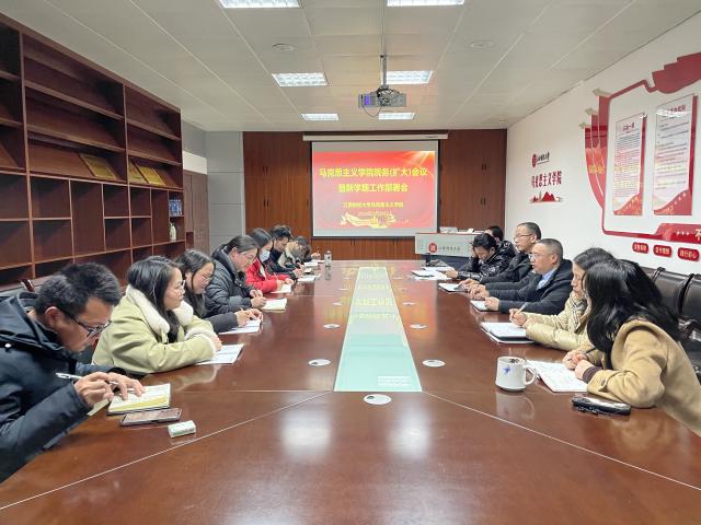 新学期,新发展,新征程,2月26日下午,马克思主义学院召开学院院务(扩大)会议暨新学期工作部署会,学院全体领导班子成员及各系部主任、副主任,学院办公室全体行政人员参加会议。会议由院长刘晓泉主持。