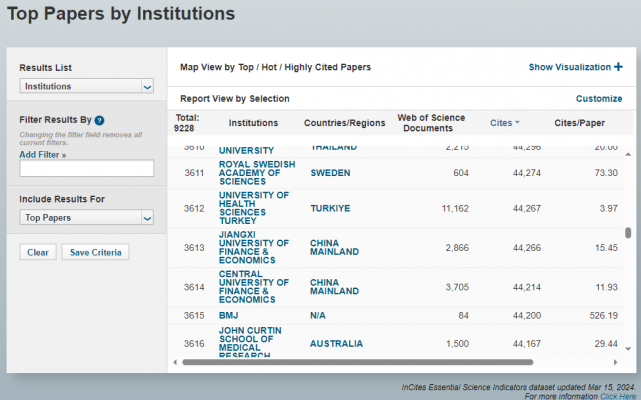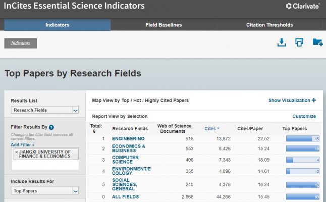 据科睿唯安(Clarivate)2024年3月发布的最新一期《基本科学指标数据库》(Essential Science Indicators,简称ESI)统计数据显示,江西财经大学环境与生态学(Environment/Ecology)学科首次进入ESI全球排名前1%,实现学科建设历史性突破,标志着我校环境与生态学进入国际高水平学科行列。江西财经大学目前已进入ESI前1%的5个学科具体表现如下: