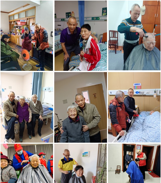 “叮铃铃……”一阵电话铃声响起,谢老接到一个上门理发的请求。他上门服务的对象主要是行动不便的老人和残疾人。结束完手头工作,谢老立马拎着便携理发箱出发。到达约定地点后,随着谢老熟练地拿起剪刀和梳子,只听见一阵“咔嚓咔嚓”声,倪爱玉老人许久未打理的头发变得整齐清爽。“老人的年龄已经很大了,平日行动不便很少出门,出门剪头发就是一件很困难的事情,幸亏有我们的谢教授,倪老每次的理发任务都是谢教授上门完成的,要是没有他,我们可真不知道怎么办!”老人的护工连连道谢。老人年事已高,腿脚不便常年靠轮椅行动,口齿也不大清晰,谢老知道老人的身体状况后,便主动上门帮助老人理发,只要一个电话,谢老就会及时赶来。后来,倪老在家不慎摔倒,导致骨折住进洪都中医院红谷滩院区。谢老得知后,虽不熟悉道路,却仍只身开着汽车,循着导航,来回往返十几公里带着水果食品和理发工具来到医院看望老人,并为她和另外四位病友理发,“谢老冒着被感染的风险,不顾个人安危来到医院,真的太感谢了!”大家称赞道。谢老摆摆手,默默地收拾好理发工具,只要老人有需要,他从未犹豫过。