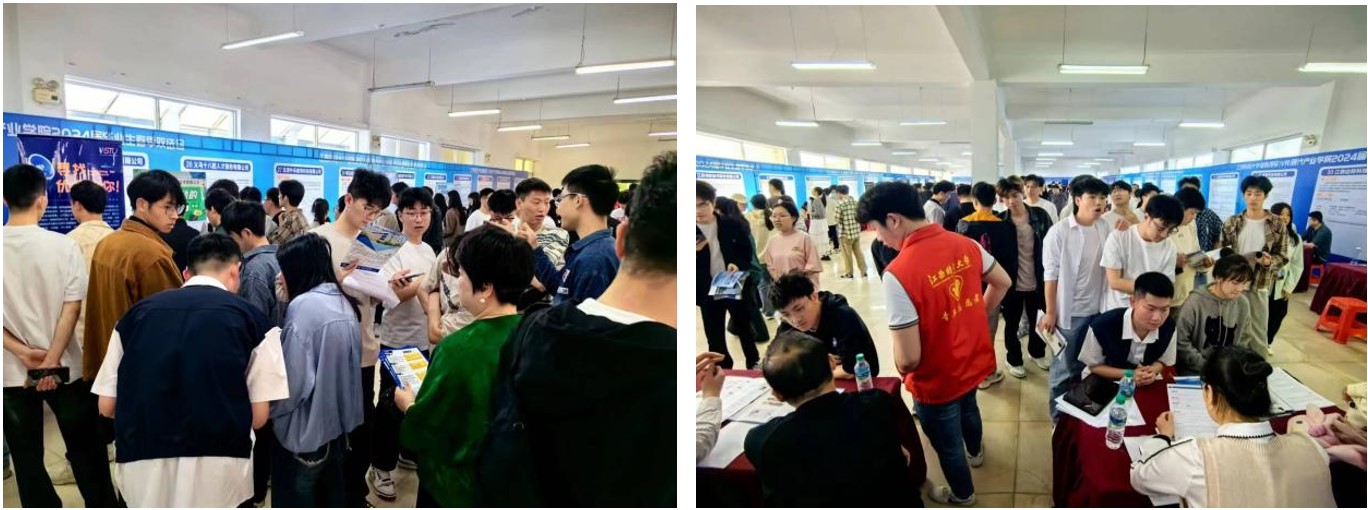 双选会安排了简历指导专区,邀请4位校企嘉宾为求职学生提供简历和面试指导;设置了党员服务岗,安排30名党员参与志愿服务工作;组织了求职互动趣味活动,求职者可以通过积极参加招聘活动领取积分,赢得礼品。招聘会场人潮涌动,气氛热烈,各招聘单位展位前,用人单位耐心细致介绍公司的发展前景、岗位需求、技能要求和薪酬待遇等情况,部分毕业生在现场与用人单位已达成签约意向。大量非毕业班同学也主动参会,提前感受求职氛围,了解行业发展与企业人才需求。