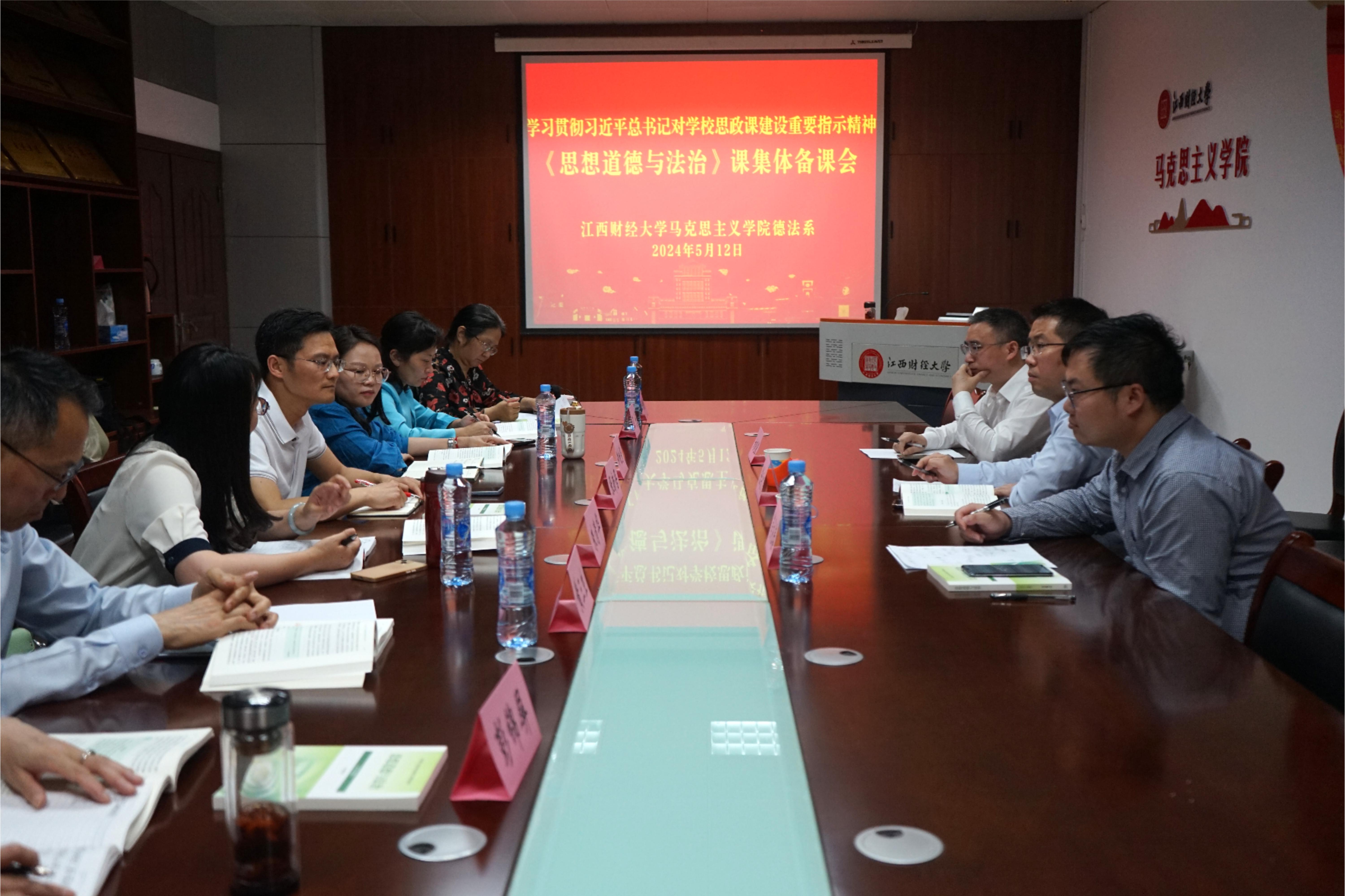 为深入学习贯彻习近平总书记对学校思政课建设重要指示精神,5月12日上午,马克思主义学院举行集体备课会。江西省委教育工委宣传部副部长陈宗文、主任肖礼偆,学院院长刘晓泉及相关思政课教师参加。备课会由“德法”教研室主任张新吾主持。