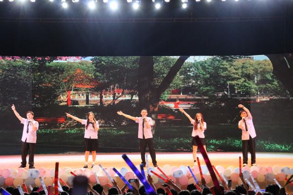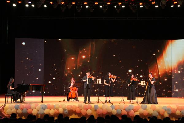 随后,晚会正式开始,一支《Feel The Rhythm》开场舞将现场气氛点燃,激发了观众们的热情。随着轻松的旋律响起,一首低吟浅唱的《晴天》正式拉开了晚会的序幕;接下来的舞蹈串烧《满怀可爱的童年》风格突变,让每一位观众回想起了童年的无忧时光;歌曲《忘记时间》《夏夜最后的烟火》等在悠扬的歌声中流露出离别愁绪,令人回忆起难忘的校园岁月,扣人心弦;而歌曲串烧《Melodic Affection》则是以激情的音乐,展示了青春的无限魅力;由校团委艺术团带来的器乐合奏《一步之遥协奏曲》让大家仿佛置身于高雅的艺术殿堂;音乐情景剧《我们不说再见》从不同视角展现了大学生活的点点滴滴,大屏幕上闪过一张张青春洋溢的照片让每个人都热泪盈眶;歌舞《西域花开》《一杯美酒》更是让同学们领略了异域民族风情。