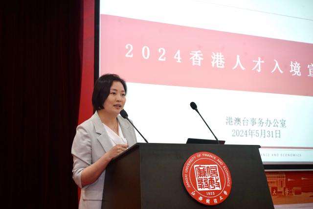 5月31日下午,香港特区政府驻武汉经济贸易办事处副主任梁晓华,香港特区政府驻武汉经济贸易办事处入境事务组入境事务主任严乐婷来我校开展香港人才入境计划宣讲活动。