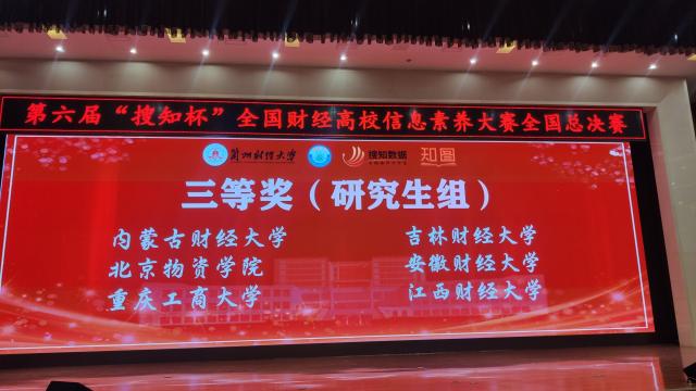 5月25日至26日,第六届“搜知杯”全国财经高校信息素养大赛全国总决赛在兰州财经大学隆重举行。来自全国财经高校的38支本科生代表队和21支研究生代表队参加了最后的角逐。我校代表队表现优异,斩获六项大奖。
