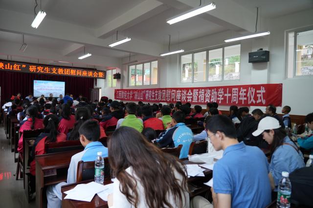 23日,江西财经大学“映山红”研究生支教团慰问座谈会暨捐资助学十周年仪式在小金县城关第二小学会议室举行。