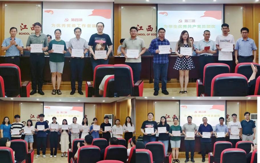 会议第一阶段,经济学院五个教工党支部和四个学生党支部进行了汇报展示。现场评委评选出了2个先进教工党支部和2个先进学生党支部。会议第二阶段,举行了颁奖仪式,为受表彰的支部和个人颁奖。此前,各支部评选产生了支部优秀党务工作者和优秀共产党员,并报经学院党委审批。(图文/经济学院 编辑/廖邦旋 审核/一审 姜莹 二审 赵旻 终审 李大晖)