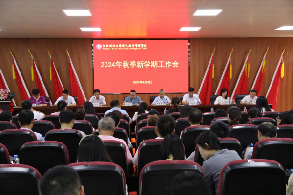 9月3日上午,现代经济管理学院召开2024年秋季新学期工作会,院长毛小兵、党委书记黄黑平、副院长丁美东、党委副书记邱晓平、副院长吴小刚,纪委书记朱晓丽及党委委员孙瑛、张富成等出席,会议由丁美东主持。