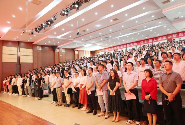 在嘹亮的校歌声中,法学院2024级新生开学典礼落下帷幕。