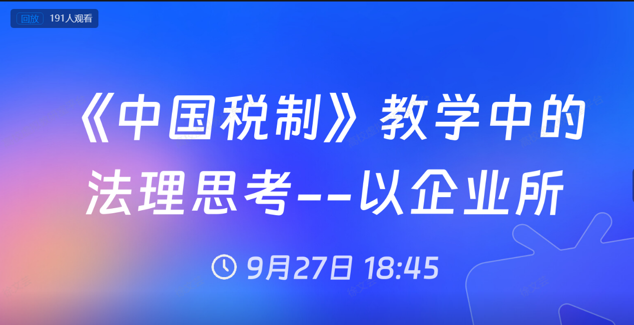 9月27日,《中国税制》课程虚拟教研室工作坊在虚拟教研室平台开展了第五期以“《中国税制》教学中的法理思考——以企业所得税为例”为主题的线上讲座。本次讲座由复旦大学经济学院余显财副教授主讲。讲座吸引了190多名来自全国高校和业界的财税领域学者、教师的参与。