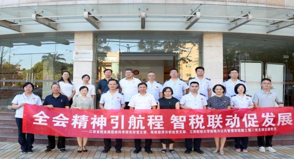 9月29日下午,财税与公共管理学院教工第二党支部携手江西省税务局税收科学研究所党支部、税收经济分析处党支部,共同举办了以“全会精神引航程 智税联动促发展”为主题的联学共建活动。此次活动得到了三个党支部全体党员的积极响应与参与,活动由财税与公共管理学院教工第二党支部支部书记邱慈孙主持。
