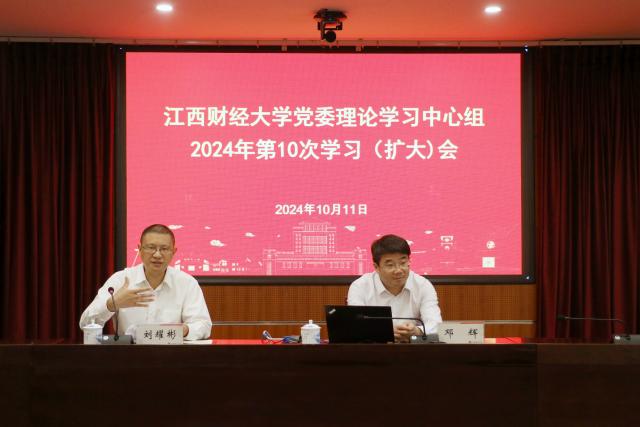 10月11日下午,校党委理论学习中心组举行2024年第10次学习(扩大)会,深入学习习近平法治思想,校党委书记刘耀彬主持学习会并作总结讲话,校长邓辉作题为《学深悟透不断发展中的习近平法治思想牢固树立社会主义法治信仰》专题辅导报告,校领导、校党委常委出席会议,各基层党委(党总支)书记,机关党委各支部书记参加了学习会。